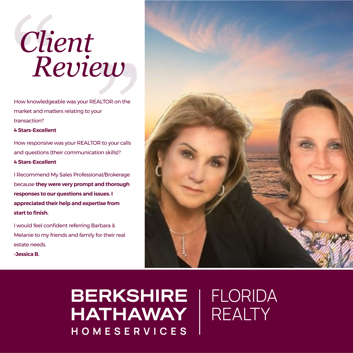 Testimonial: Barbara and Melanie were there every step of the way and answered all questions we had. They were incredibly responsive given how fast we decided to move on looking/buying/selling.
